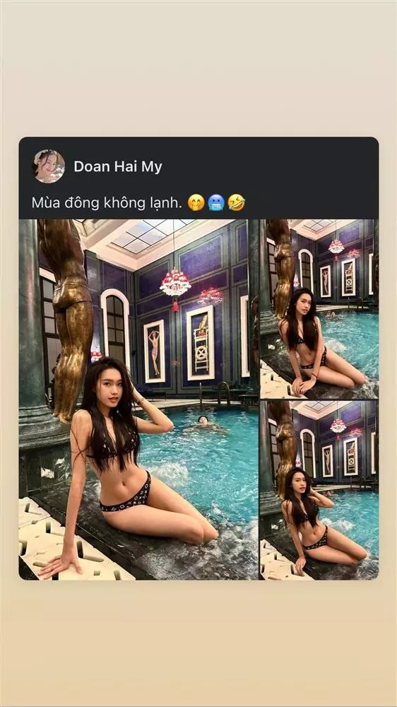 Mới đây, cô nàng khoe ảnh thả dáng bên hồ bơi. Đình kèm khoảnh khắc bỏng mắt, cô viết: "Mùa đông không lạnh".