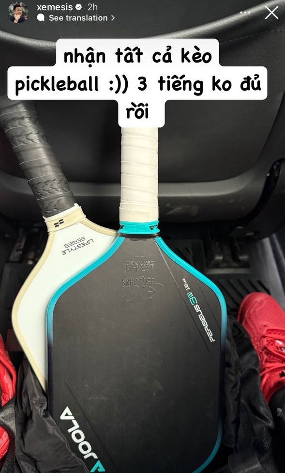 Gần đây, trên mạng xã hội của mình, Bò Chảnh cũng thường xuyên cập nhật hình ảnh đi chơi pickleball. Trùng hợp thay, ngay sau khi cô đăng clip thì Xemesis cũng có ngay một story chia sẻ về đam mê với bộ môn này. Do đó không cần phải check-in chung thì netizen cũng đoán ra cặp đôi cùng đam mê pickleball và chơi chung với nhau.