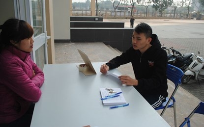 Ban tiếp nhận SV giải đáp những thắc mắc của Minh (SV năm 3, Đại học Xây dựng Hà Nội). Nguyễn Nga |