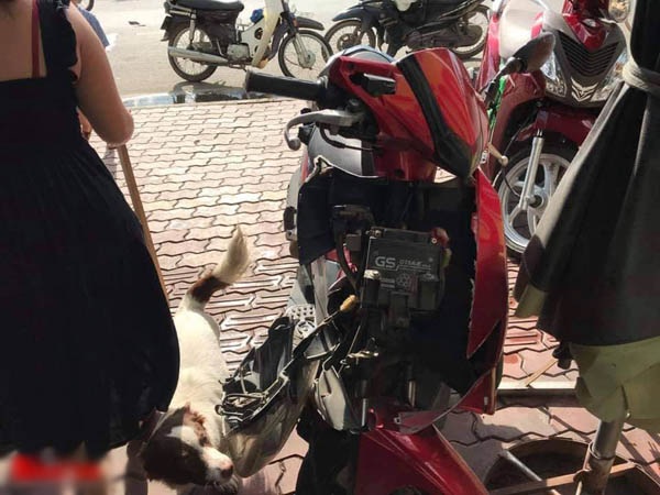 Bên cạnh đó chiếc xe máy của 2 cô gái cũng bị hư hỏng nặng.