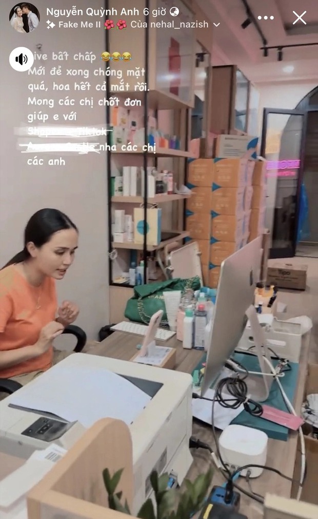 Không ít lần cư dân mạng bắt gặp hình ảnh Quỳnh Anh livestream bán hàng đến đêm muộn hay tăng ca ngày lễ, sau khi mới sinh xong. Như mới đây, chính chủ tự đăng clip tan làm lúc gần 12 giờ đêm, tag chồng Duy Mạnh vào kèm theo icon khóc mếu thể hiện sự mệt mỏi.