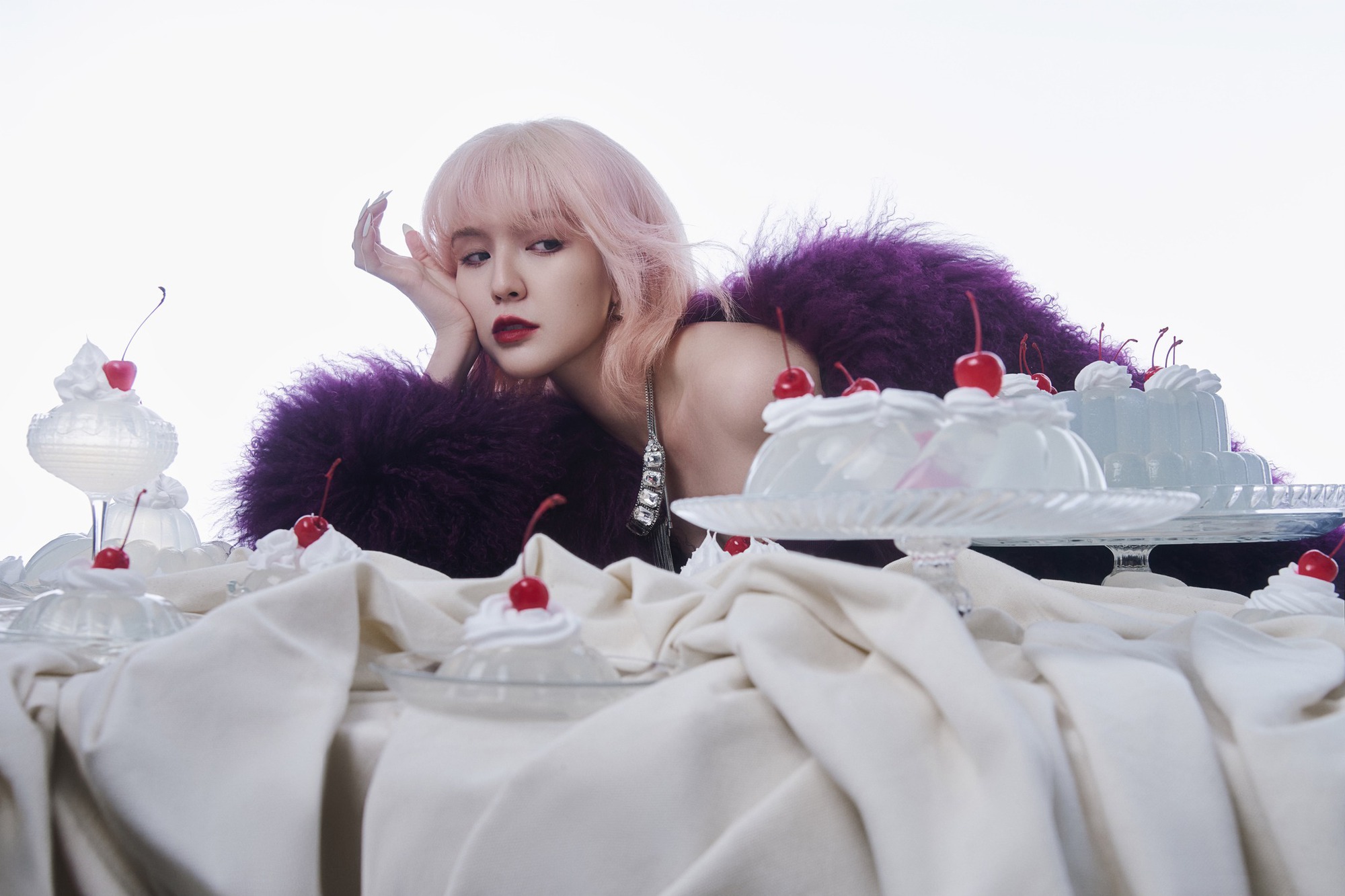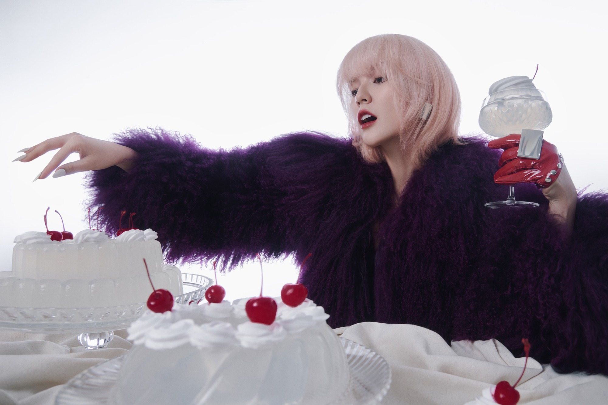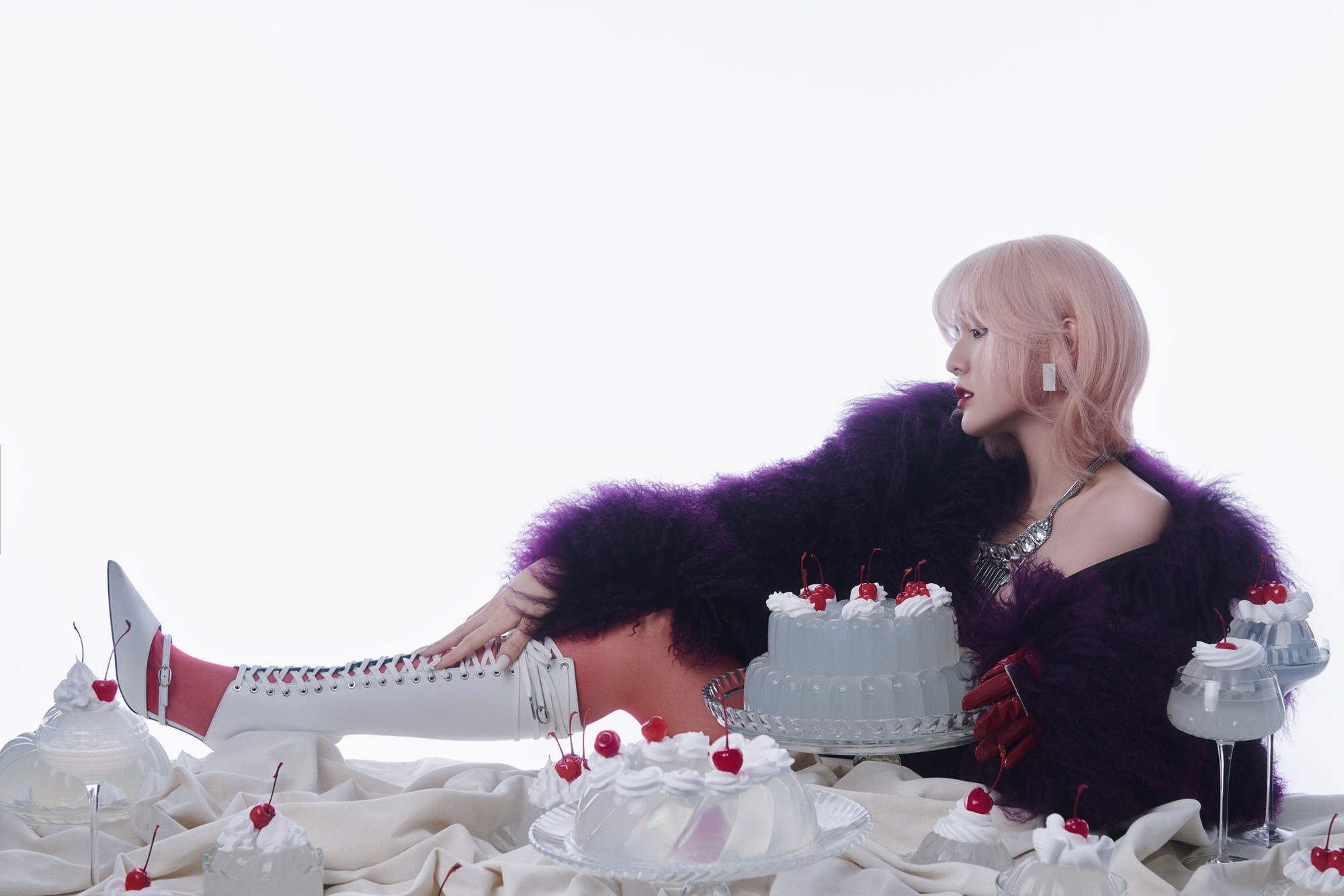 Trong chùm ảnh này, Hải Tú xuất hiện với diện mạo khác lạ, đặc biệt là mái tóc sáng màu nổi bật. Cô nàng trang điểm đậm, khoe chân dài thẳng tắp và biểu cảm slay chuẩn “nàng thơ lookbook” đình đám một thời.