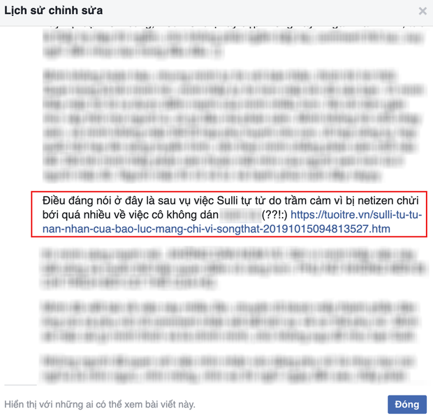 Trước những phản ứng của dân mạng, Hana đã thay đổi staus của mình, xoá bỏ phần nhắc đến Sulli. Cụ thể như sau: