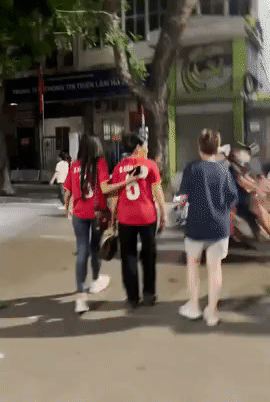 Ngoài ra, Hải My cũng luôn đứng ngay sát phía sau mẹ Văn Hậu giữa đám đông, cô nhẹ nhàng đặt tay lưng mẹ chồng tương lai đầy tình cảm. Khi cùng nhau qua đường, Doãn Hải My cũng luôn ở tư thế che chắn cho mẹ Văn Hậu an toàn.