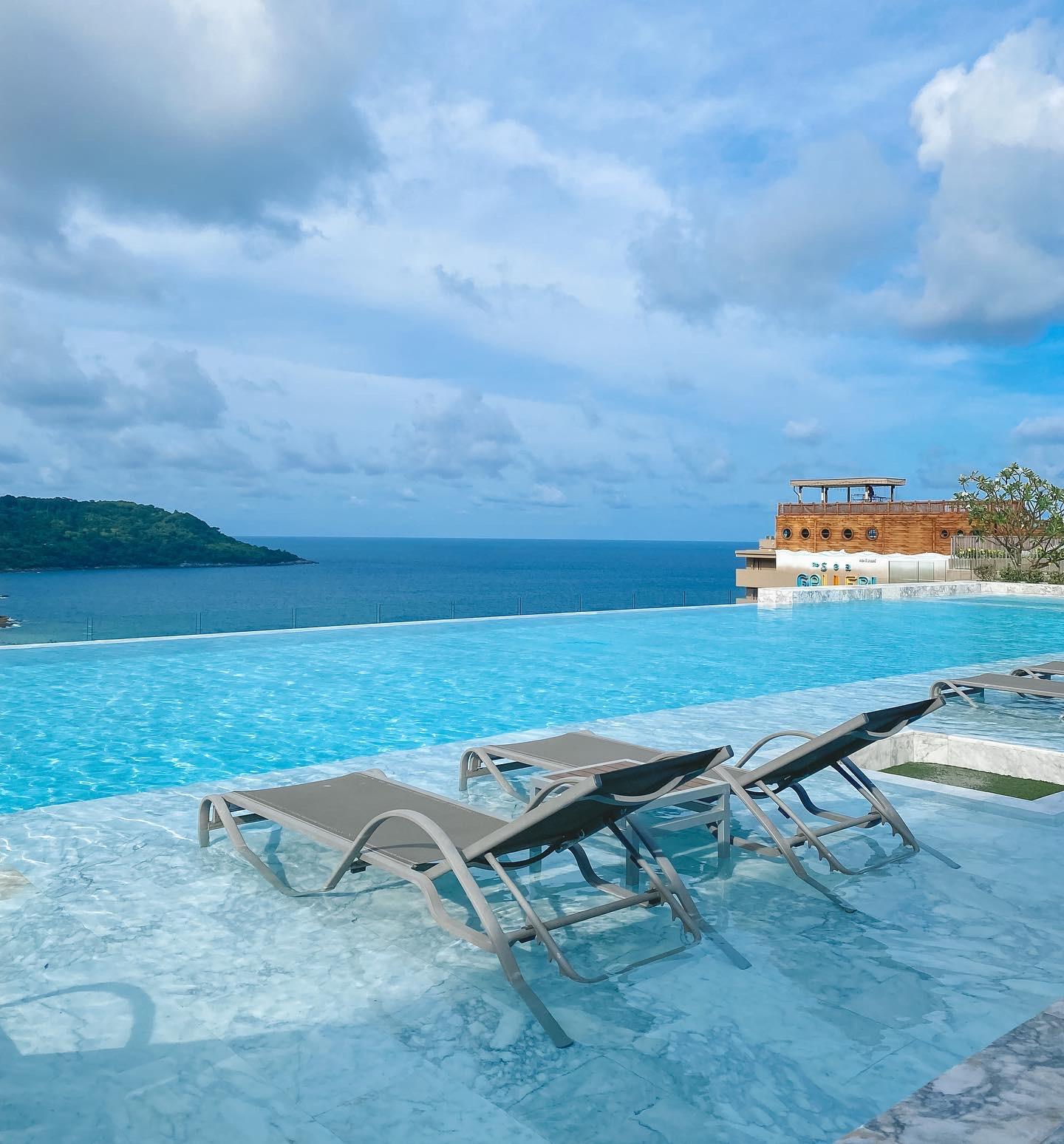 Khu khách sạn này khá xa trung tâm nhưng có tầm nhìn hướng biển, hồ bơi, phòng đẹp và phục vụ kèm bữa sáng. Trên tầng thượng của khách sạn còn có nhà hàng, điểm ngắm hoàng hôn ấn tượng. "Nếu muốn ở gần trung tâm, tiện di chuyển ăn uống hơn, bạn có thể tìm khách sạn ở Patong hoặc khu phố cổ Phuket", Hương gợi ý.