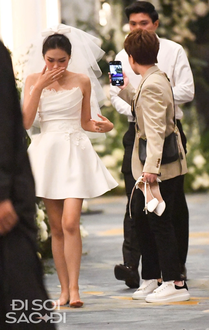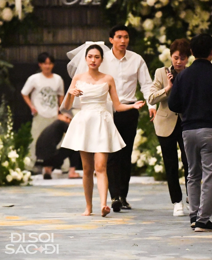 Sau buổi tiệc, người ta phát hiện cô dâu Doãn Hải My thoải mái đi chân đất về phòng khách sạn với chồng Văn Hậu và nữ diễn viên Bảo Hân tháp tùng. Theo nhiều nhận xét, có lẽ do đang có nghi vấn mang thai nên Hải My được chăm sóc tận tình. Bản thân cô dâu có lẽ cũng "quẩy" nhiệt quá nên cởi luôn giày để cho thoải mái. Khi đi ngang ống kính camera, nàng dâu cũng cho thấy sự ngượng ngùng nhất định trong khi Văn Hậu theo sát như hình với bóng.