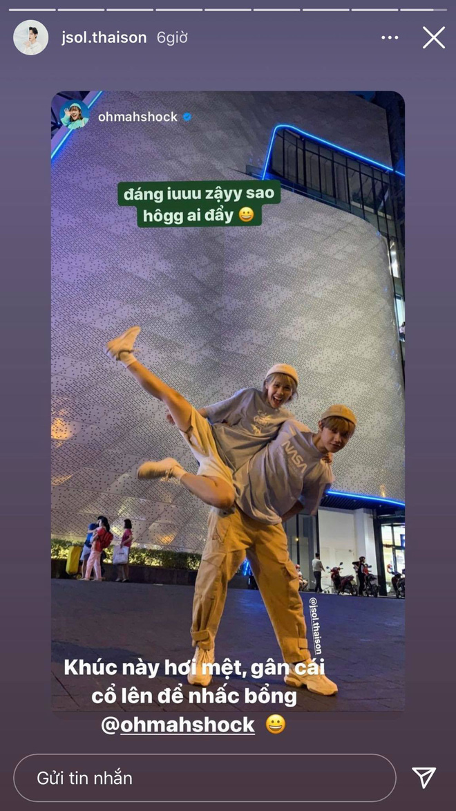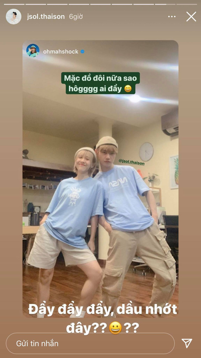 "Phu thê vậy sao lại không đẩy?", “Mặc đồ đôi nữa sao không ai đẩy?”, "Đáng 'iu' vậy sao không ai đẩy?" là những câu hỏi Hậu Hoàng gửi gắm dân mạng. Không những thế trong mỗi story, "thánh nữ nhạc chế" còn đăng ảnh cực kì thân thiết của 2 chị em làm bằng chứng.