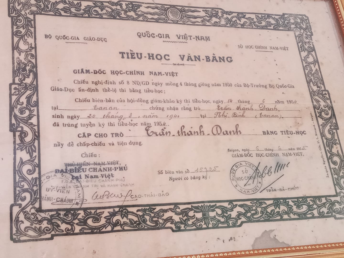 Bên cạnh khoe ảnh cha mẹ, ông bà hồi trẻ, mới đây, trong một hội nhóm khá lớn trên MXH Facebook, một dân mạng đã chia sẻ hình ảnh tấm bằng tốt nghiệp của ông mình. Điểm đặc biệt đầu tiên, chính là sự quy củ của thể chế giáo dục ngày xưa khi đến cấp Tiểu học cũng cần có bằng cấp chứng nhận, công nhận hẳn hoi. Một điểm đặc biệt thứ hai, chính là niên đại của chiếc bằng được cấp vào khoảng năm 1955. Dân mạng này chia sẻ đây là bằng cấp tốt nghiệp Tiểu học, có thể suy ra rằng, đây là một người ông rất hiếu học, vì giai đoạn những năm 1954 là một giai đoạn rất rối ren của đất nước.