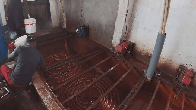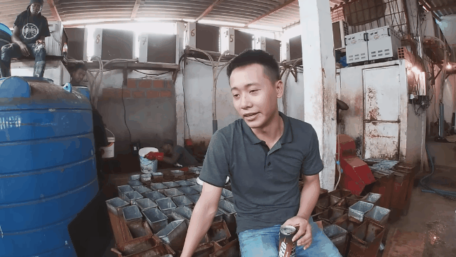 Trong xưởng có tới hàng trăm khay đá, hơn chục chiếc điều hòa chuyên để giữ lạnh cho đá và công việc của anh cứ đều đặn như vậy mỗi ngày. Đây là công việc mà Quang Linh Vlogs gọi là "việc nhẹ - lương cao" tại châu Phi. Tuy nhiên. đó chỉ là cách chàng trai xứ Nghệ nói vui thôi, còn thực tế cuộc sống và công việc ở đây vất vả, khó khăn hơn nhiều so với những gì xuất hiện trên video của Quang Linh Vlogs.