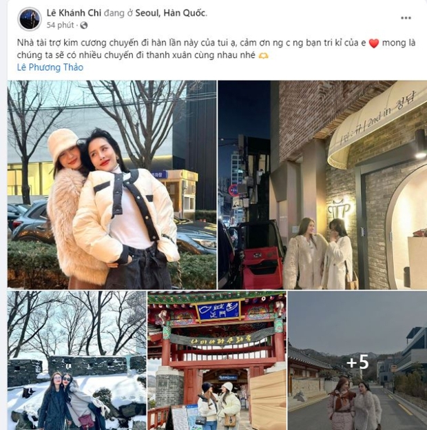 "Nhà tài trợ kim cương chuyến đi Hàn lần này của tôi ạ, cảm ơn người chị, người bạn tri kỉ của em. Mong là chúng ta sẽ có nhiều chuyến đi thanh xuân cùng nhau nhé", Khánh Chi chia sẻ.