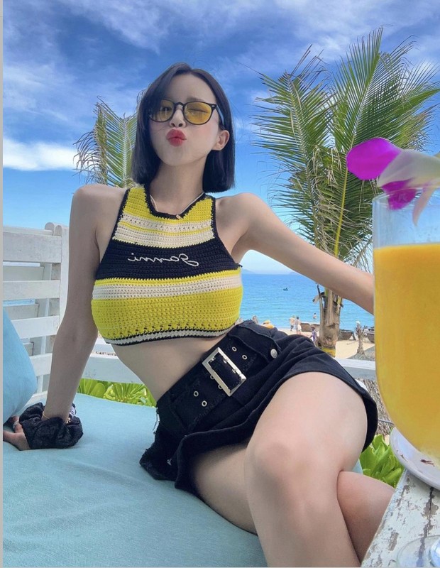 Jinuary gây chú ý khi diện set đồ nổi bật khi đi chợ đêm Phú Quốc. Bộ trang phục của cô là sự pha trộn giữa trang phục đi biển và dạo phố. Đặc biệt, thiết kế lưới khiến cơ thể của hot girl ẩn hiện lấp ló càng làm tăng thêm sự cuốn hút.