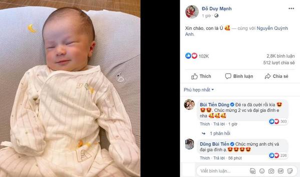 Trước đó, để chào mừng cậu con trai đầu lòng, Quỳnh Anh đã tạo một tài khoản Instagram cho con. Tài khoản này nhanh chóng nhận được hàng chục nghìn lượt theo dõi của cộng đồng mạng. Hình ảnh đầu tiên của bé Ú cũng nhận được gần 10 nghìn lượt thả tim.
