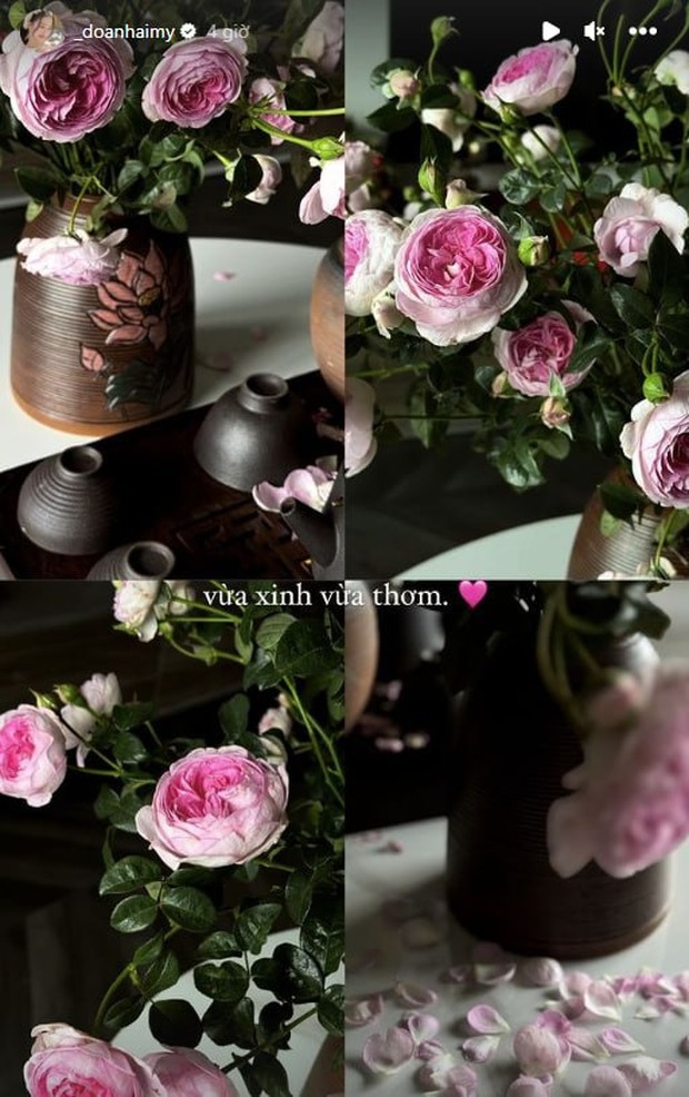 Trong khi đó phía trong nhà nàng WAG Doãn Hải My rất chu đáo sắm sửa đủ loại hoa để trang trí cho tổ ấm với chàng hậu vệ sinh năm 1999. Trong dịp cuối năm này, cô đã gia nhập “đại hội cành củi khô” tuyết mai từ sớm, đều đặn cập nhật tình hình hoa nở với mọi người.