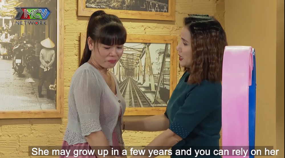 Đồng cảm với nữ chính, MC Cát Tường đã dành cái ôm và nhiều lời động viên, an ủi. "Em rất đẹp và giỏi, có đứa con là tài sản vô giá, vài năm nữa con lớn rồi là sẽ thư thả. Có chồng hay không có chồng mọi thứ đều là nhân duyên hết".