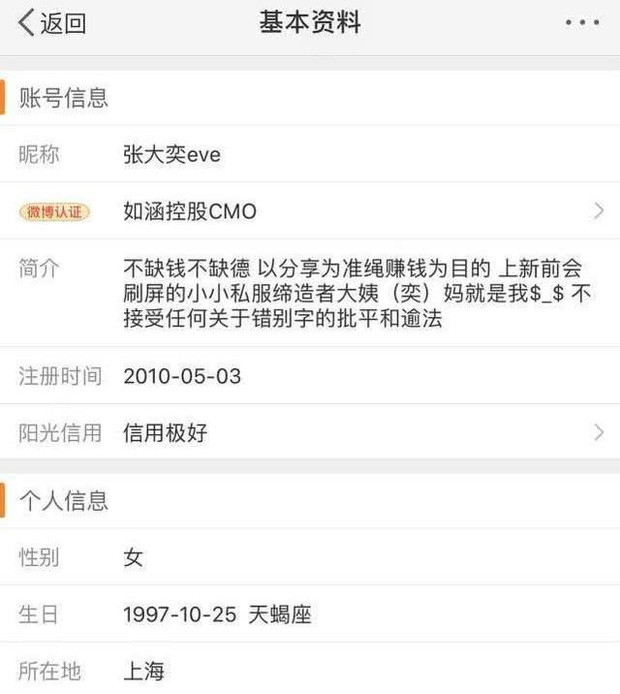 Tiếp đó, "hot girl Taobao" còn có hành động bí mật xóa bỏ cột thông tin về tuổi tác trên tang cá nhân của mình. Động thái này của Trương Đại Dịch khiến nhiều người không khỏi khó chịu, thậm chí một vài người đã đặt biệt danh mới cho cô nàng là "Trương Xóa Xóa".
