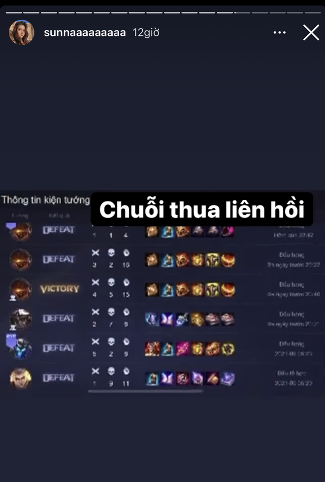 Chưa kể, việc có chuỗi thua dài liên tiếp trong Liên Quân khiến mức rank tụt từ chuẩn bị lên Cao thủ xuống còn Tinh anh 4 khiến hot girl 19 tuổi này than trời vì đang trong khoảng thời gian gặp quá nhiều chuyện xui.