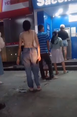 Cụ thể, trên người cô chỉ mặc đúng một chiếc áo mỏng tang, có quai 2 bên và 1 chiếc dây buộc mỏng manh phía sau lưng, hở trọn tấm lưng trần. Cô gái này vẫn thản nhiên đứng xếp hàng để chờ rút tiền, mặc cho những ánh nhìn ngạc nhiên của những người xung quanh.
