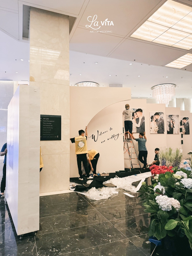 06/04/2024 17:54Hình ảnh đầu tiên ở đám cưới Quang Hải tại khách sạn 5 sao: 10.000 bông hoa rải khắp lối