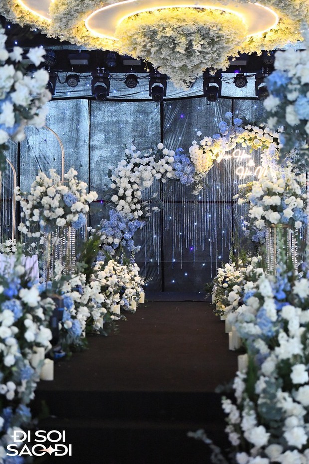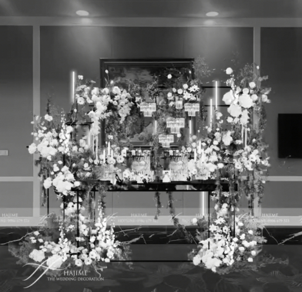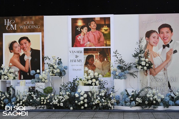 Trước đó tại đám cưới của Đoàn Văn Hậu và Doãn Hải My ở Thái Bình cũng được bố trí hoàn toàn bằng hoa tươi với tone màu trắng và xanh da trời. Theo tiết lộ của một nhân viên trang trí tiệc cưới, tổng số tiền mà chàng cầu thủ đầu tư cho không gian này lên tới gần 1 tỷ đồng. Sau đám cưới, nhiều khách mời và người dân cũng hào hứng lấy hoa từ tiệc cưới mang về.