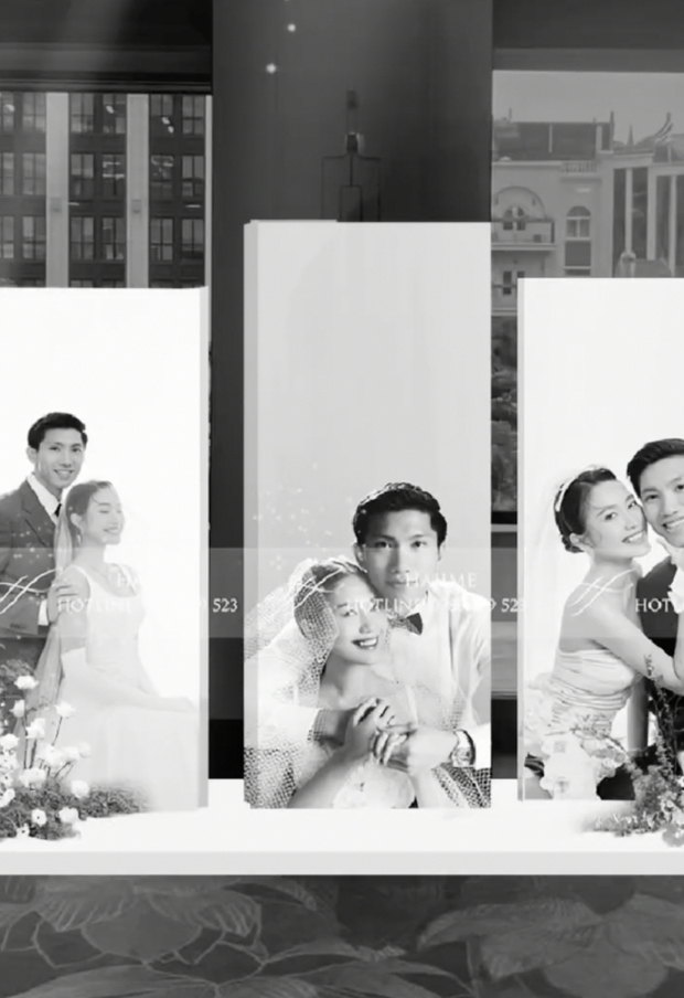 Dù đây mới chỉ là bản thiết kế 3D và ảnh đen trắng nhưng không khó để nhận thấy bối cảnh cực kỳ hoành tráng đã được chuẩn bị. Ngoài hoa tươi trang trí, ảnh cưới của cặp đôi cũng phóng khổ lớn và trưng bày ở sảnh khách sạn. Với những hình ảnh được tiết lộ này, cư dân mạng cũng trông đợi được xem hoàn thiện chứ không riêng gì 2 nhân vật chính.