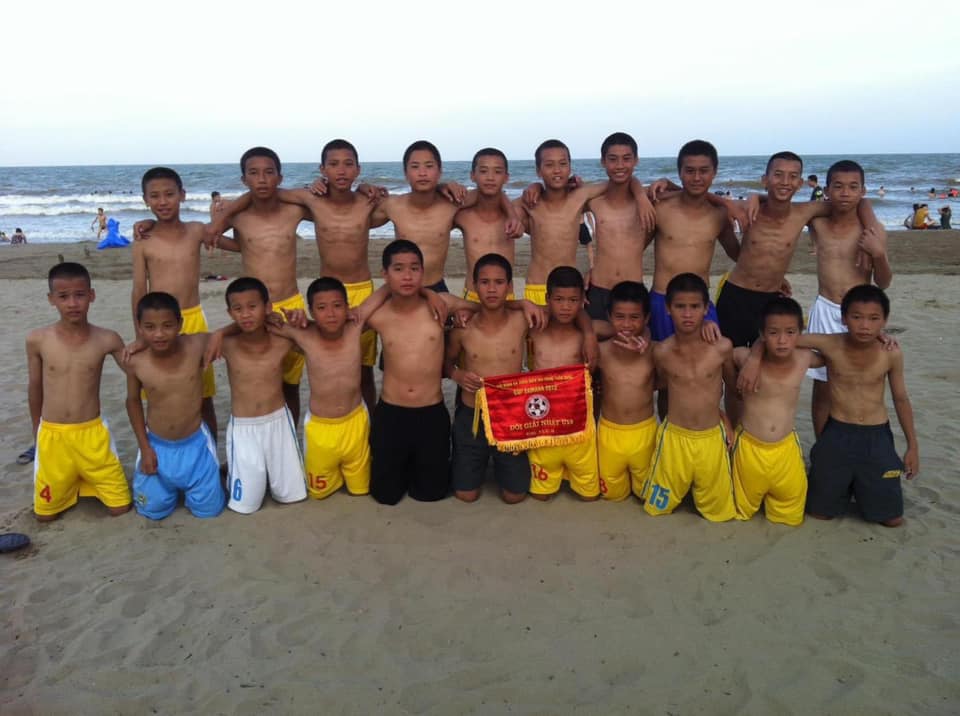 Bức hình được chụp ở bãi biển sau khi U11 Thái Bình giành chức vô địch Giải bóng đá Nhi đồng toàn quốc 2010. Trong hình, Đoàn Văn Hậu đứng ở hàng trên, sở hữu chiều cao nổi bật nhưng lộ thân hình "gầy trơ xương".