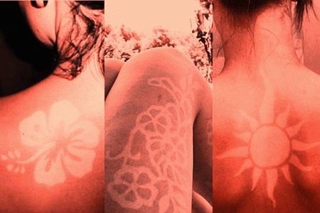 Nếu muốn hình xăm được rõ và bền, người tham gia phải phơi da rất lâu để tạo ra độ tương phản về màu. Giới trẻ do đó đã đẩy nhanh tốc độ bằng cách không bôi kem, để da tiếp xúc trực tiếp với ánh nắng mặt trời. |