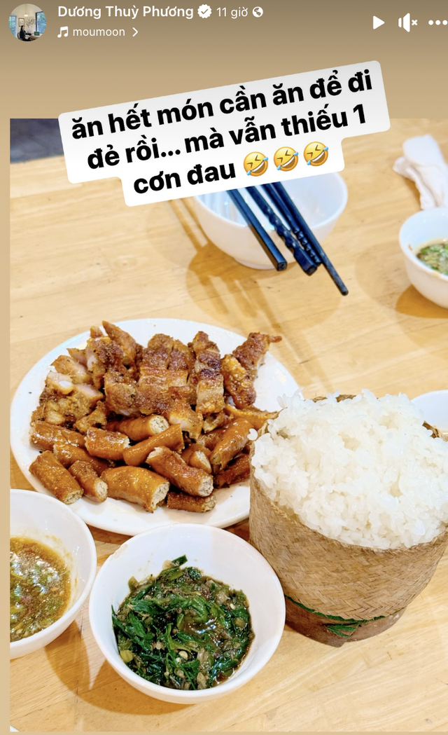 Có thể thấy rõ, khi mang bầu, gương mặt của Thuỳ Phương có phần bị phá nét, mũm mĩm hơn thường ngày nhưng cô nàng vẫn giữ được vẻ xinh đẹp, ưa nhìn, đúng phong độ của Hoa khôi đại học Vinh nổi danh một thời. Ngoài phần bụng nhô ra, vóc dáng của vợ Quế Ngọc Hải không có nhiều thay đổi. Nàng WAG còn hài hước cập nhật hình ảnh bữa cơm trước ngày đi sinh em bé với lời dẫn: "Ăn hết các món cần ăn để đi đẻ rồi mà vẫn thiếu một cơn đau".