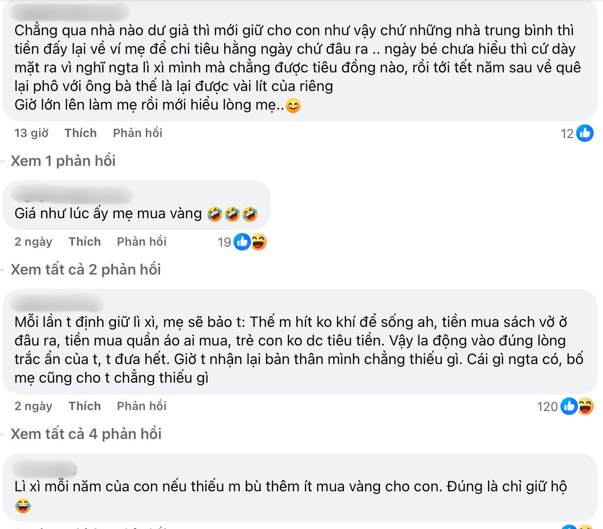 Hồi bé, chúng ta vẫn thường được nghe mẹ bảo "thôi cứ đưa tiền lì xì đây, mẹ cất cho", "con giữ là mất đấy, cứ đưa cho bố mẹ", "mình dùng lì xì mua đồ chơi hoặc bàn học nhé, số còn lại là tiết kiệm"... Thế nhưng, nhiều người không tin bởi cứ trao cho mẹ là tiền bạc tự dưng "không cánh mà bay". Lúc đó thì trách mẹ lắm, thế nhưng khi lớn lên, trưởng thành, lập gia đình và trở thành mẹ, bạn sẽ cảm thấy nên... đưa cho mẹ.
