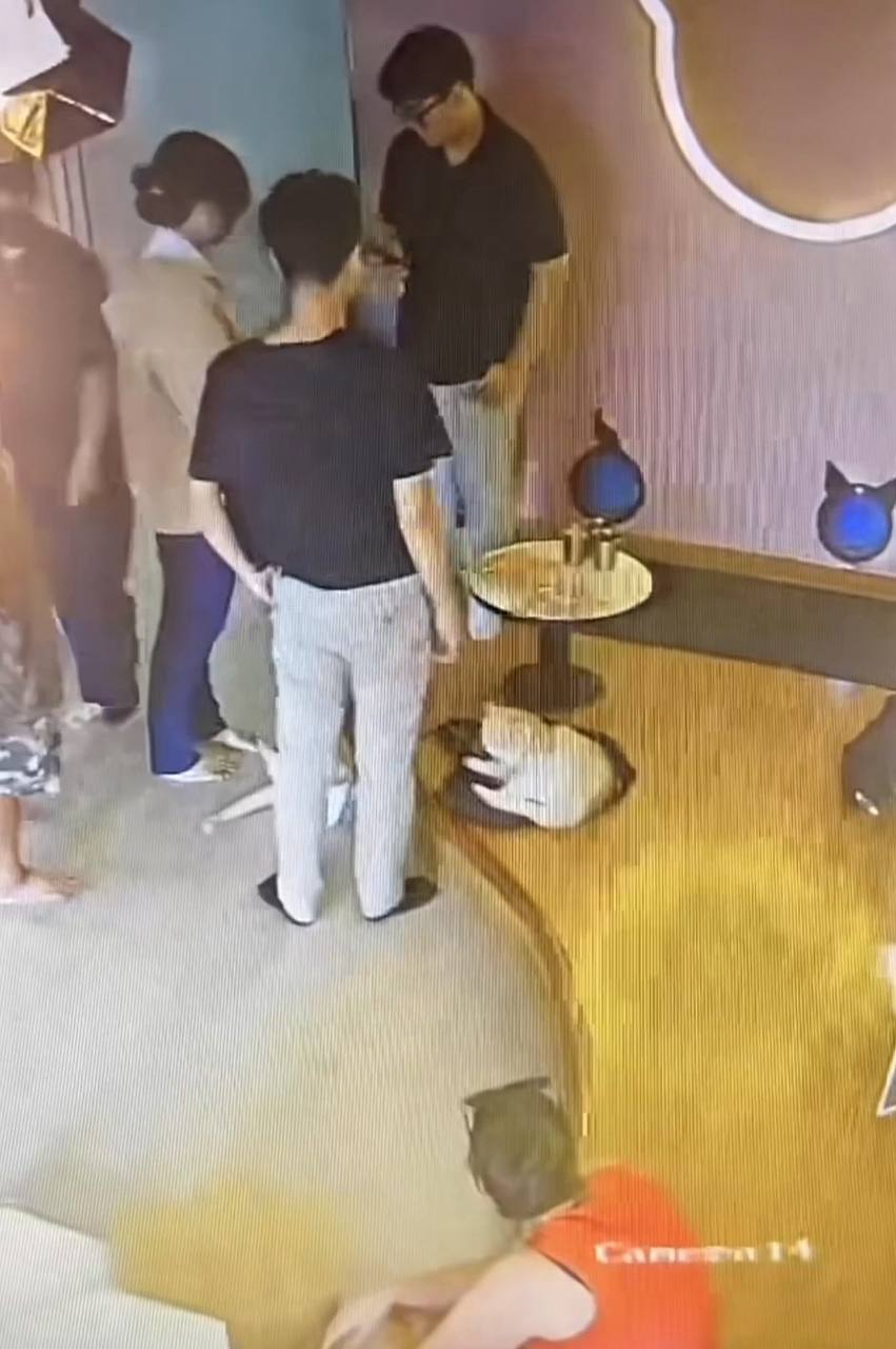 Khi nữ sinh quay lại và không thấy điện thoại đâu, cô hoảng hốt nhờ nhân viên giúp đỡ tìm kiếm. Nhân viên quán đã gọi vào số của nữ sinh, nhưng điện thoại được đặt ở chế độ rung nên không có tiếng chuông. Chú mèo thì vẫn nằm yên trên chỗ cũ, tỏ ra vô cùng "vô tội". Cuối cùng, sau khi nhân viên kiểm tra camera và nhấc chú mèo lên, ai nấy cũng bật cười khi phát hiện chiếc điện thoại mất tích đang nằm ngay dưới người chú mèo này.