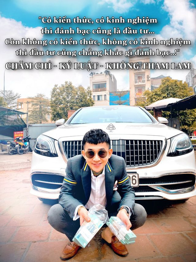 Trên trang cá nhân của mình, "Hoàng Tử Gió" thường xuyên đăng tải những hình ảnh về tiền bạc, xe hơi, check-in sang chảnh. Giống như những hot boy - hot girl tài chính 4.0 đã bị bóc trần, thanh niên này cũng không quên đính kèm những status về triết lý kinh doanh, làm giàu.