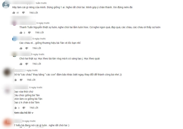 Nhiều người phê phán cách làm clip của bà Tâm Quảng Ngãi nghèo nàn ý tưởng, nhàm chán, toàn bắt chước bà Tân Vlog.