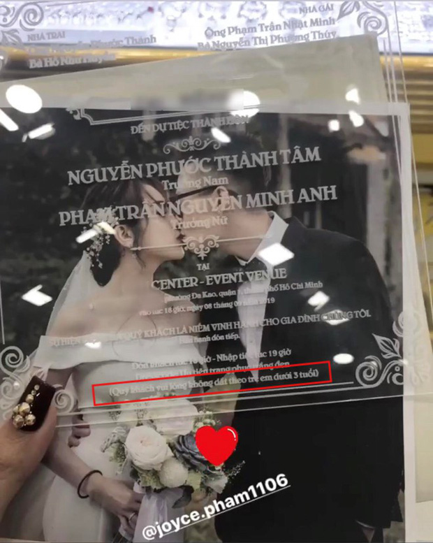 Nhiều người cho rằng nhà Minh Nhựa đã rút kinh nghiệm từ đám cưới của Cường Đô La và Đàm Thu Trang nên mới có quy định cấm trẻ em 3 tuổi. Tuy nhiên, nó không giúp cặp đôi Joyce Phạm và Tâm Nguyễn né khỏi tranh cãi không đáng có trước thềm đám cưới.