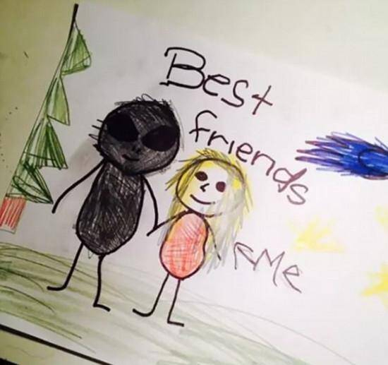 Được biết, cô giáo giao cho học sinh bài tập vẽ tranh với chủ đề "người bạn thân nhất của em", khi nhận kết quả, có 1 bức vẽ khiến cô giật mình. Bên cạnh cô bé là một hình thù kỳ dị màu đen với đôi măt to, không tròng. Hai "đứa trẻ" cầm tay nhau thân thiết. Cô liền gọi cho phụ huynh để trao đổi.