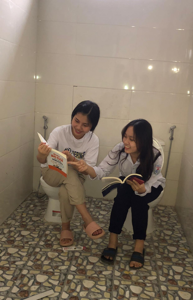 Mới đây, dân mạng được phen xôn xao vì hình ảnh các bạn học sinh của một trường trung học đang học bài và chơi đùa trong một căn phòng có "view" hơi lạ, đó là nhà vệ sinh của trường. Điều lạ trong căn phòng này đó là dù có đặt hai bệ xí cạnh nhau nhưng nhà trường lại quên để vách ngăn đi đâu mất rồi để các học sinh được dịp ngồi "quây quần" thế này?