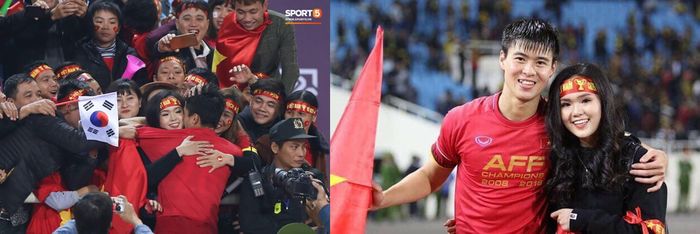 Còn nhớ vào giây phút đội tuyển Việt Nam làm nên lịch sử, bước lên ngôi vô địch AFF Cup 2018, Duy Mạnh tìm bạn gái mình giữa biển người rồi chạy tới, ôm lấy bạn gái rồi đeo chiếc huy chương vàng cho cô đầy xúc ộng.