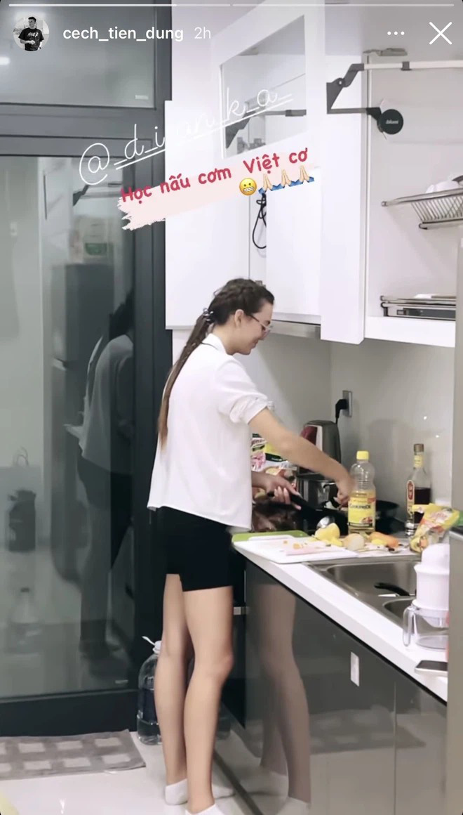 Cách đây không lâu, Dianka còn tập tành nấu cơm Việt cho bạn trai khiến dân tình không khỏi xuýt xoa.