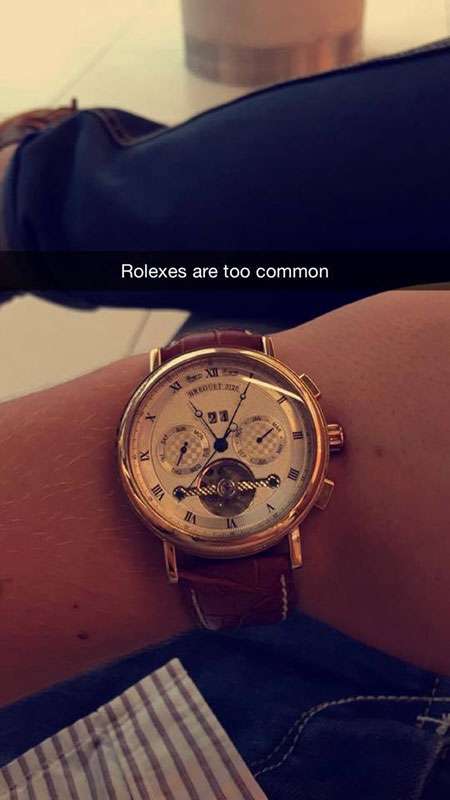 Đồng hồ Rolex quá phổ biến rồi! (Trong ảnh, anh chàng này đang đeo Breguet, một hãng đồng hồng siêu sang). |