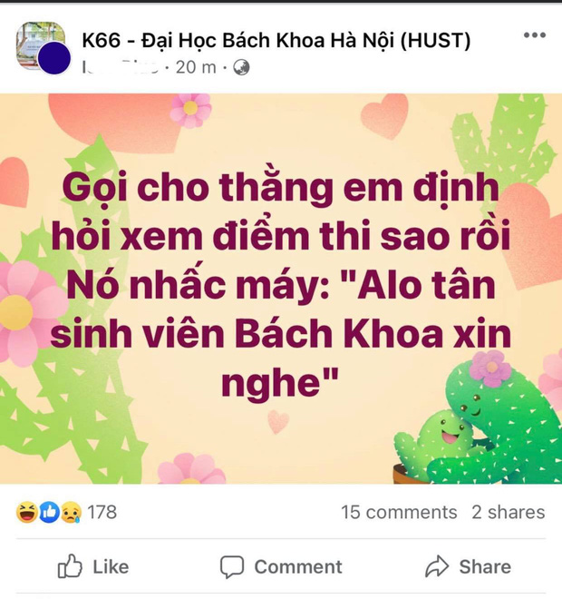 Sĩ tử háo hức trước điểm số thì người thân cũng trông mong điểm không kém. Mới đây, một câu chuyện hài hước đã được 1 anh chàng chia sẻ trong group dành cho sinh viên Đại học Bách khoa Hà Nội.