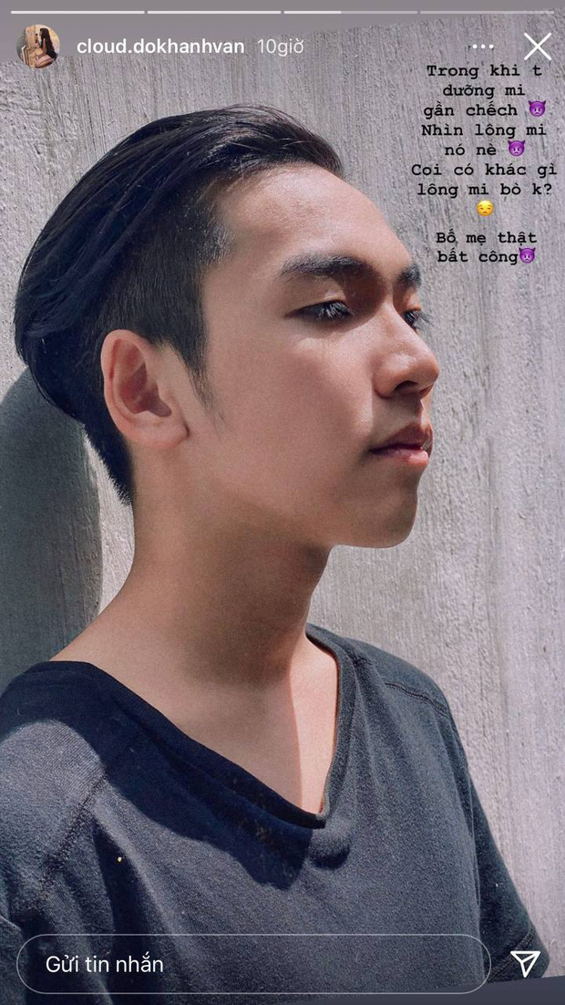 Dù cũng được thừa hưởng những nét đẹp từ bố mẹ như người chị, nhưng em trai Khánh Vân lại sở hữu hàng lông mi dài, cong vút giống bố. Hàng mi cực phẩm đến nỗi Khánh Vân phải cảm thán: “Bố mẹ thật bất công”. Biết là cô nàng nói đùa vậy thôi, bởi vì bản thân cô cũng rất xinh đẹp rồi, thêm nữa với nhan sắc và visual đỉnh cao 2 đời như thế này thì ai làm lại nữa.