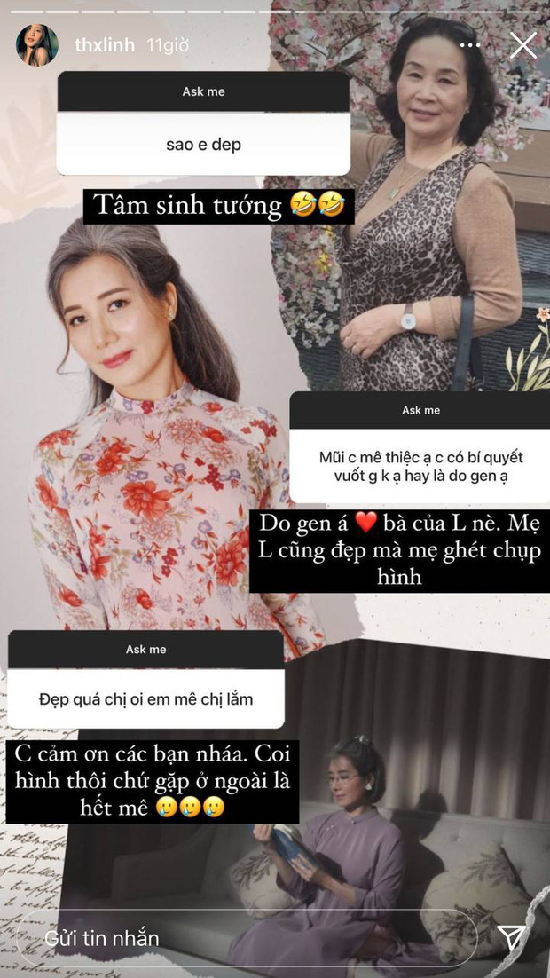 Rất nhanh chóng và không lòng vòng, cô đã khoe một loạt ảnh của bà mình qua thời gian. Nhìn hình, rồi Thùy Linh còn bonus thêm ảnh của mẹ mình. Chứng kiến ảnh của bà và mẹ hot girl, nhiều người thừa nhận cô nàng đẹp hoàn toàn là do gen, được di truyền từ bà đến mẹ rồi đến con cháu.