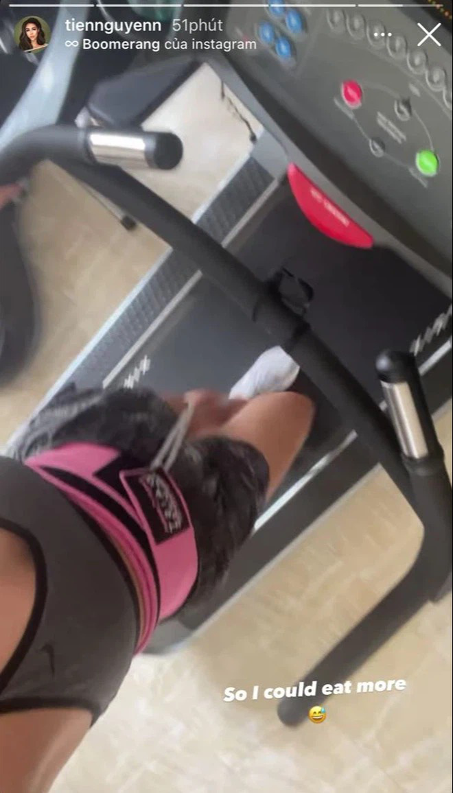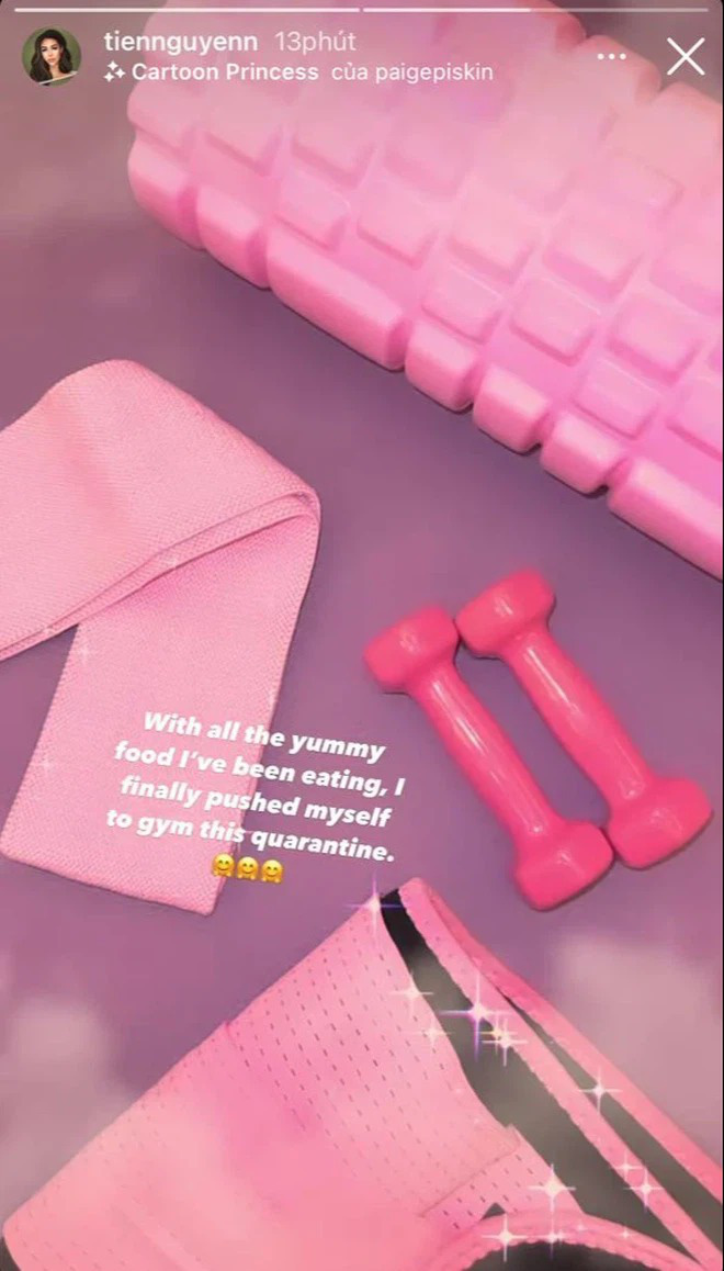 Nhưng chụp ảnh là phụ, tập tành mới là chủ yếu. Vì vậy Tiên Nguyễn không quên cho mọi người cùng thấy máy chạy bộ cùng bộ dụng cụ tập tành full hồng của mình. Thế này thì dáng của ái nữ nhà tỷ phú đẹp là chuyện đương nhiên nhỉ?