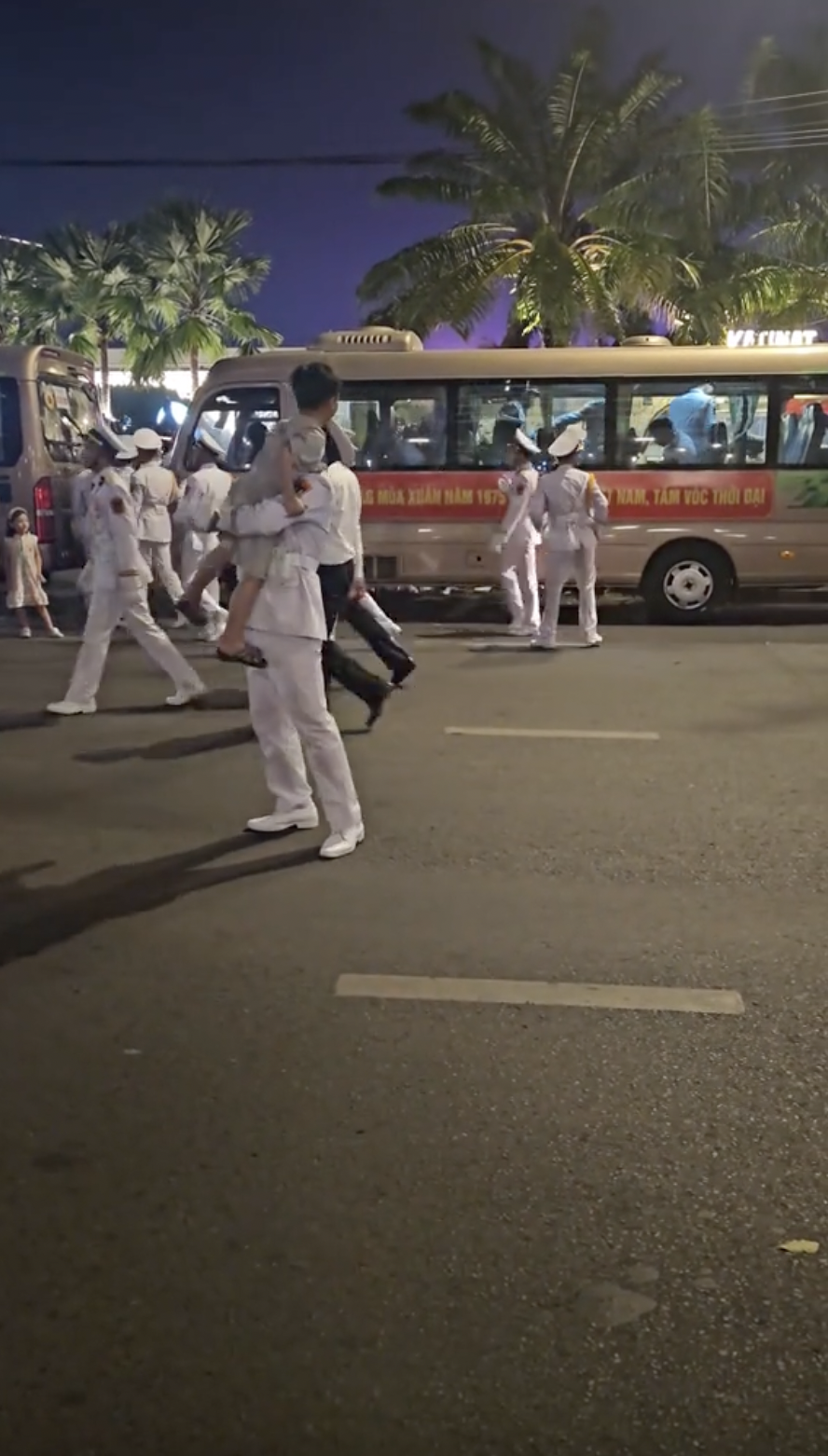 | Dù sơ luyện đã rất muộn nhưng các chiến sĩ cười rạng rỡ khi thấy sự nhiệt tình của người dân (Nguồn: @ngoc.linh.ne) |