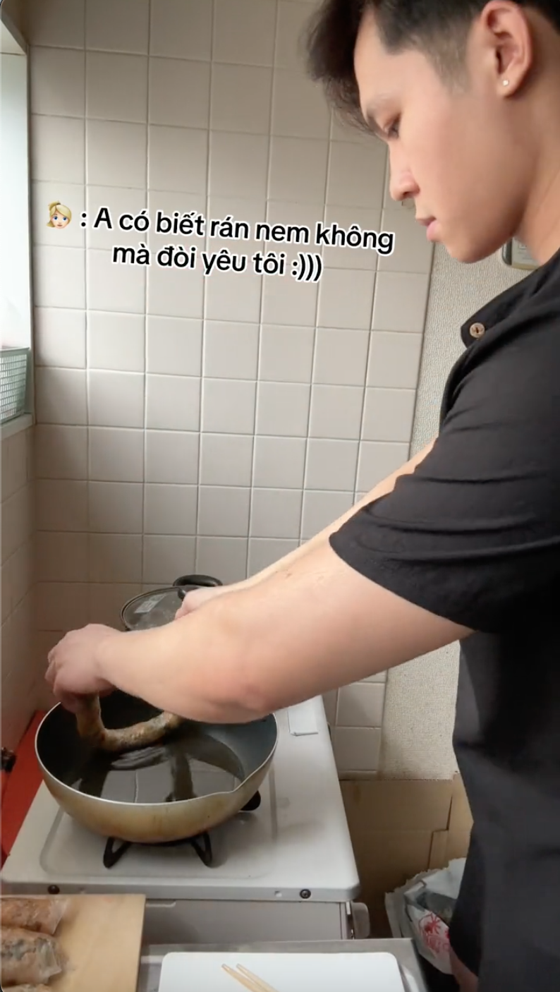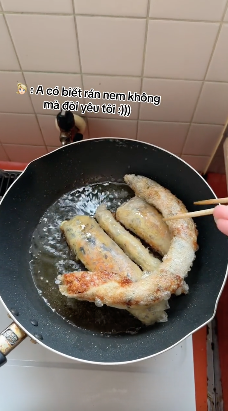 Chuyện sẽ chẳng có gì nếu như mới đây không xuất hiện clip rán nem của một chàng trai, mà màn rán nem này còn được thực hiện trước lời "thách" của một cô gái rằng: "Anh có biết rán. nem không mà đòi yêu tôi". Và kết quả sau đó khiến cho ai xem cũng phải bật cười.