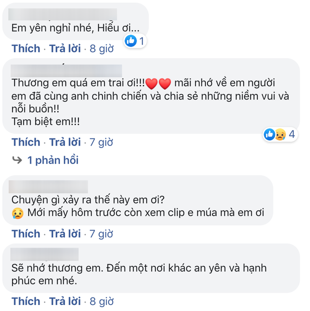 Trên trang cá nhân của Trung Hiếu, người thân, bạn bè cũng như đông đảo fan hâm mộ bày tỏ sự tiếc thương trước sự ra đi đột ngột này. Nhiều người tỏ ra không tin, một số khác thì không giấu nổi nỗi buồn khi nam nghệ sĩ qua đời ở độ tuổi còn quá trẻ.