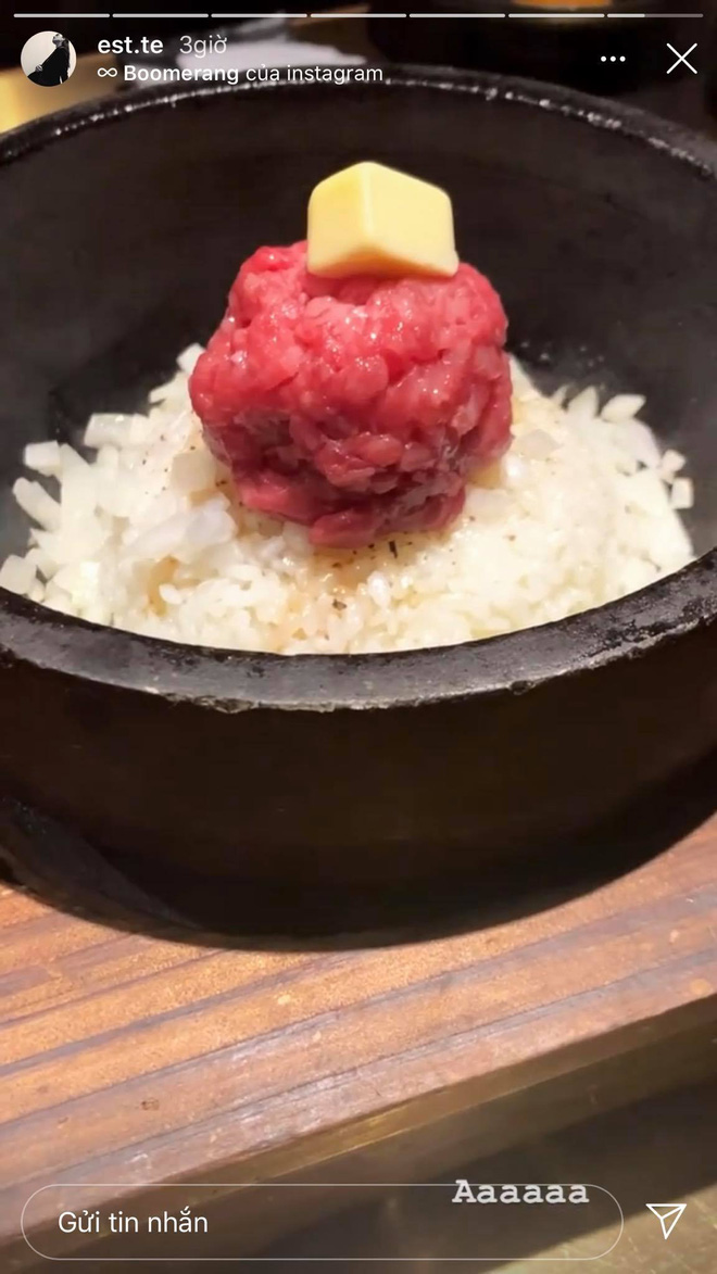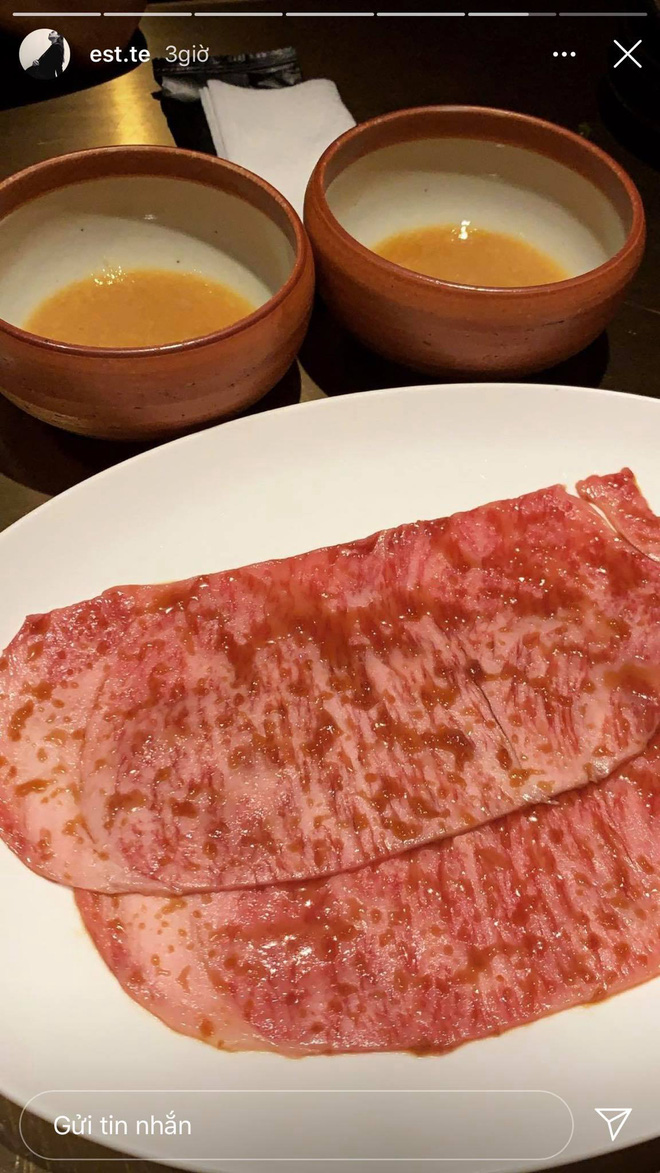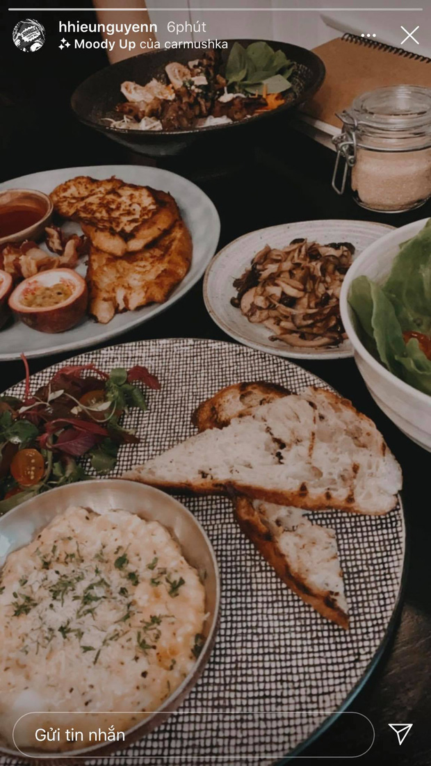 Ngay sau khi xoá story cận cảnh Diệu Linh, Hiếu Nguyễn đã thay thế bằng ảnh đồ ăn ở một nhà hàng sang chảnh. Đương nhiên lấp ló xa xa trong ảnh là ai đó mặc đồ đen y hệt Diệu Linh.