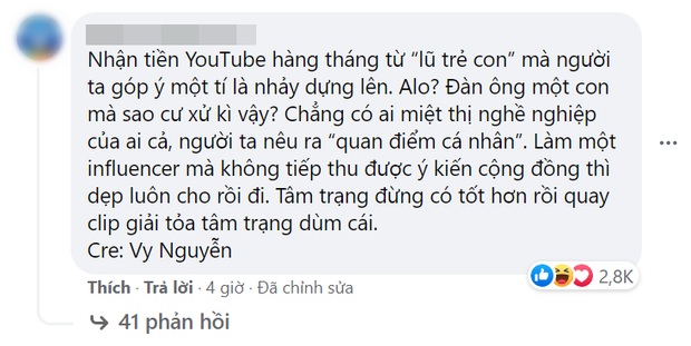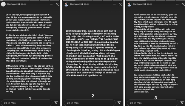 Không dừng lại ở đó, trang cá nhân của cả 2 vợ chồng Kiên Hoàng đều bị dân mạng nhảy vào gạch đá. Trên các group cộng đồng lớn, mọi người cũng bàn tán xoay quanh scandal Kiên Hoàng chửi fan là "lũ trẻ con" nên ngày hôm qua hot dad sinh năm 1991 đã chính thức lên tiếng thanh minh về lỗi phát ngôn của mình.