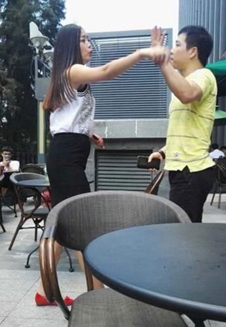 | Cô gái tỏ ra khá tức giận với bạn trai. |