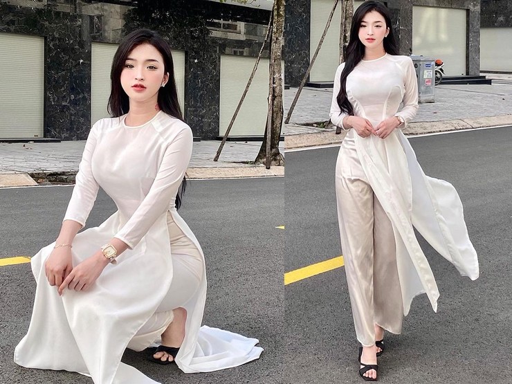 Nhan sắc xinh đẹp, vóc dáng bốc lửa là lợi thế giúp hot girl Đồng Nai tự tin lăng xê các xu hướng hot, đặc biệt là các trang phục tôn thế mạnh hình thể. Tuy nhiên, ngay cả khi diện những trang phục kín đáo, dịu dàng như áo dài thì Bảo Trân vẫn gây thương nhớ vì quá đẹp.