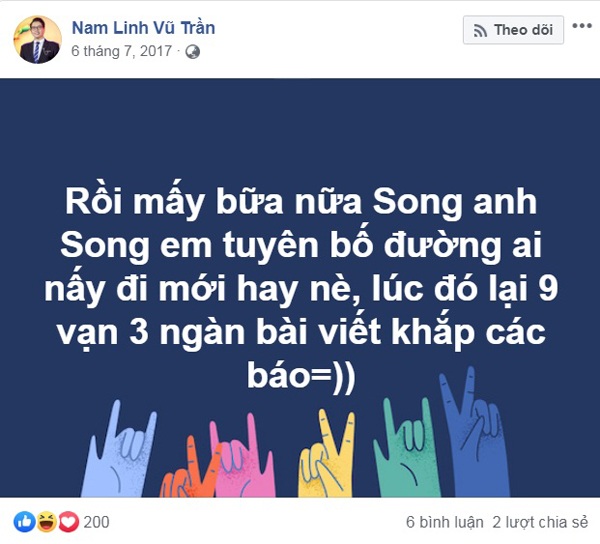 'Đọc xong chuyện này thật sự thấy hơi sốc vì 2 năm đã kết thúc hôn nhân. Cảm thấy hơi tiếc vì họ rất xứng đôi vừa lứa. Cá nhân mình nghĩ rằng, hết duyên phận thì đường ai nấy đi, thế nên đừng quá tiếc cho họ. Biết đâu sau chia tay, người ta sẽ tìm được người tốt và hợp hơn hiện tại.