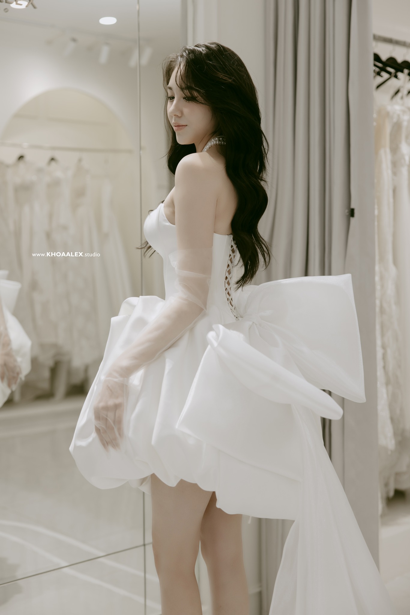 Hình ảnh diện lễ phục cưới của cặp đôi khiến dân tình xuýt xoa, hot girl xinh đẹp nhận nhiều lời khen nhan sắc.